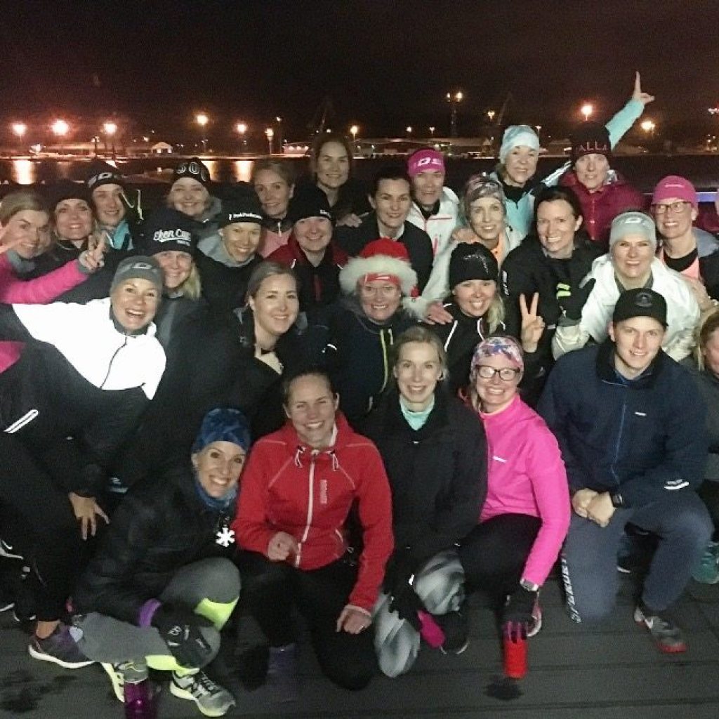 Viime viikonlopun pikkujoulumme alkoivat tietysti teemaan sopivasti: treenillä. Liikummehan muutenkin yhdessä. Paikalle oli pyydetty CrossFittiä ohjaava palomies, joka veti meille hauskat kehonpainotreenit vuokraamamme juhlatilan kattoterassilla, siis ulkona. Hikoilimme pareittain kyykkyjä, askelkyykkyjä, punnerruksia ja burpeita. Treeni oli kova, mutta hauskaa oli!