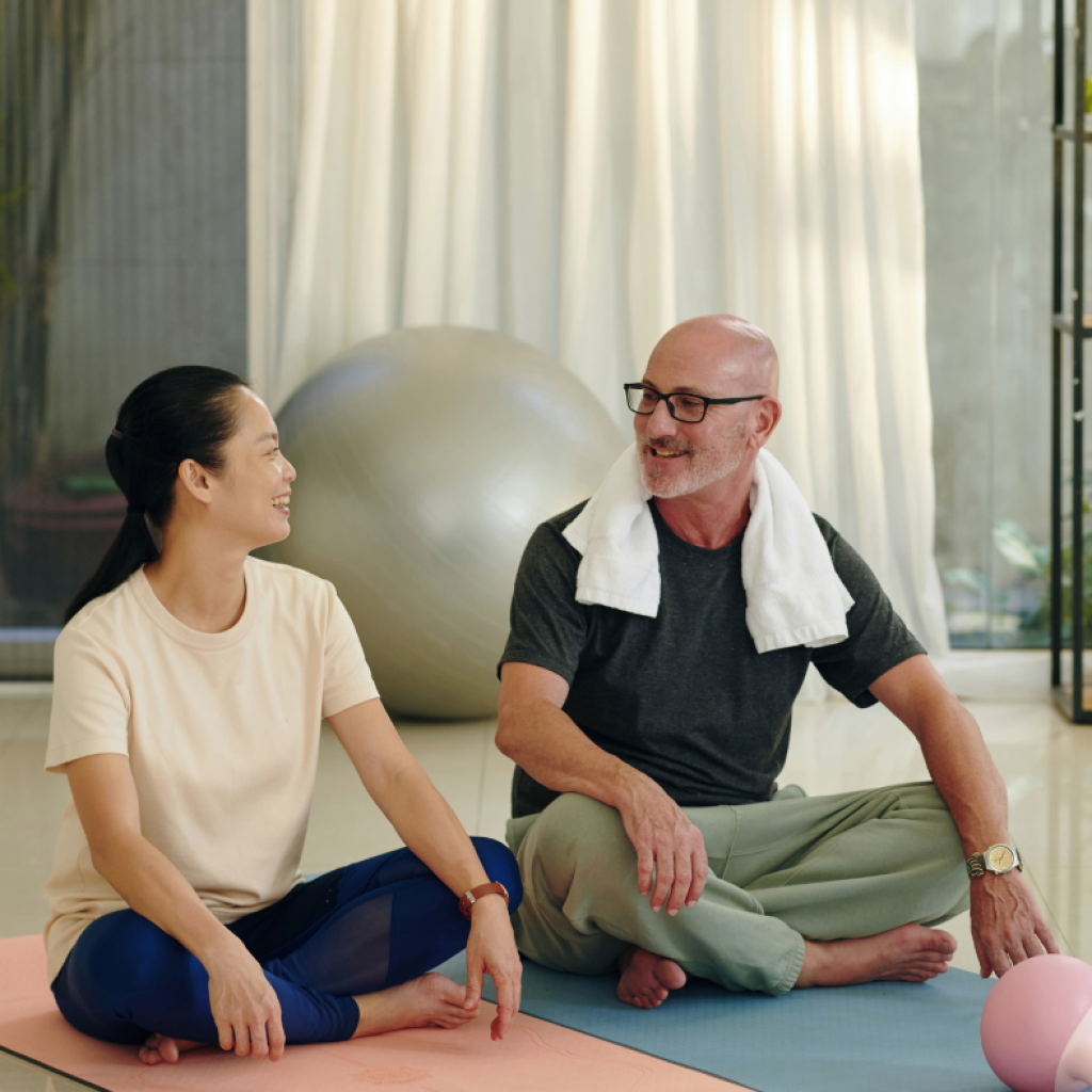 Yhteinen liikuntahetki tarjoaa luontevan paikan keskustelulle ja kuulumisten vaihtamiselle ilman häiriötekijöitä.