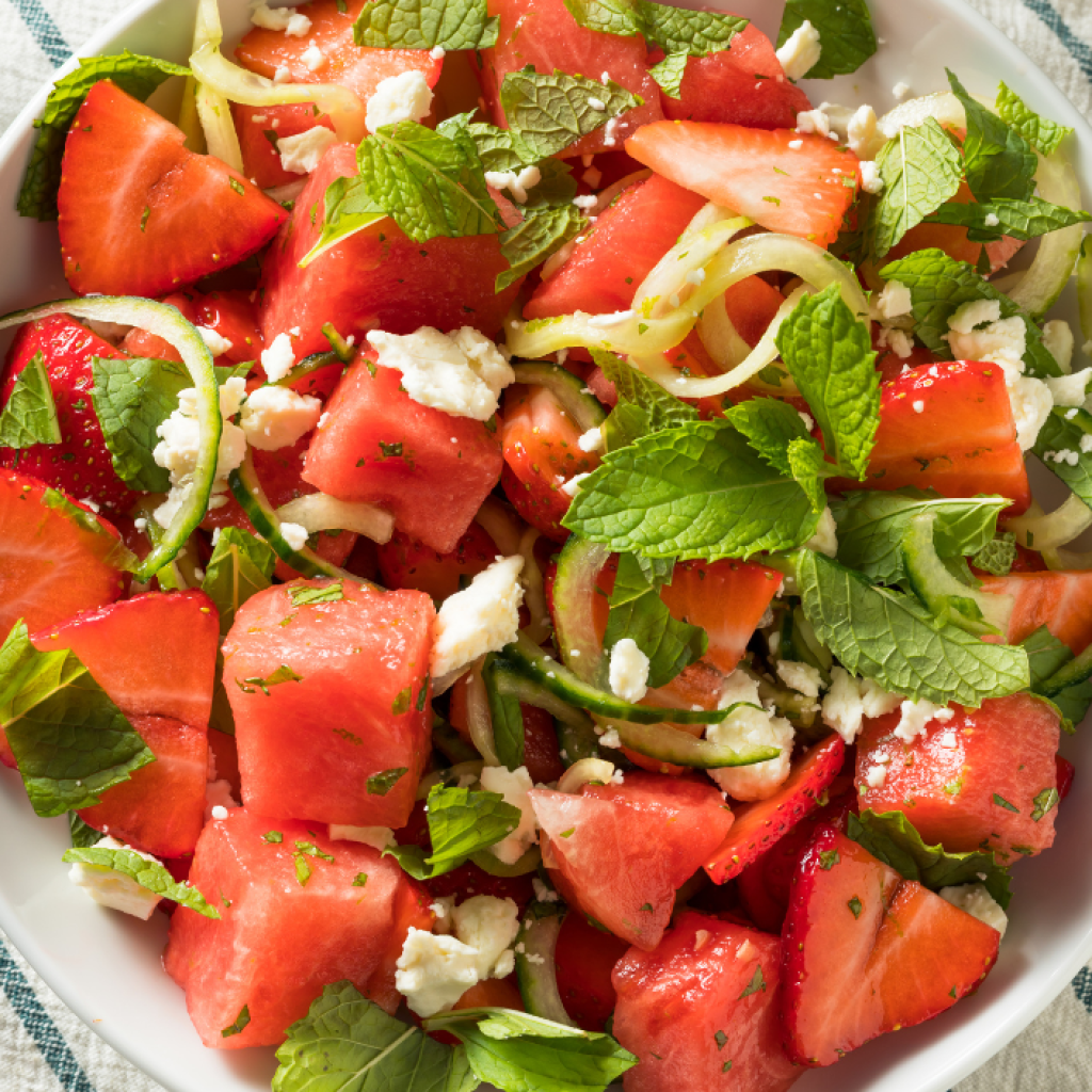 Resepti: Vesimeloni-fetasalaatti mansikoilla